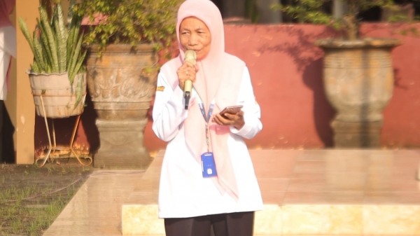 Setelah apel selesai, dilanjutkan dengan pembacaan puisi oleh Ibu Sri Yatin S.Pd. Beliau membawakan karya puisi bertemakan “Halal bihalal”. Yang mana dalam puisi tersebut mempunyai pesan tersurat yakni kita sebagai makhluk sosial tentu pernah bersinggungan antar satu sama lain, dan tentu pula mungkin ada kekhilafan baik yang disengaja maupun tak di sengaja maka dari itu ajakan untuk saling memaafkan di momen bulan syawal ini tentulah sangat tepat untuk digaungkan.