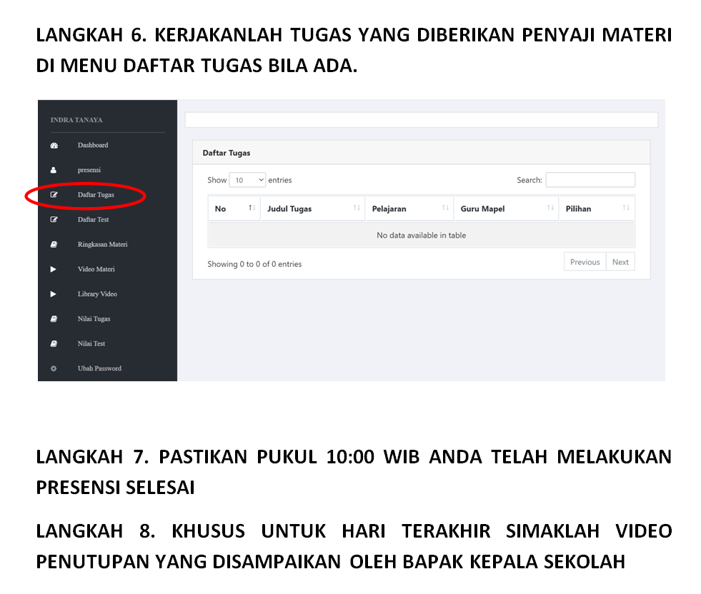 5. Bila siswa mengalami kendala akses dan teknis, segera menghubungi wali kelas masing-masing sesuai dengan